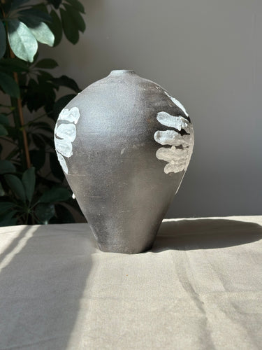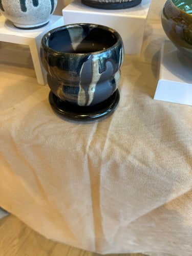 Hand carved charcoal and white planter